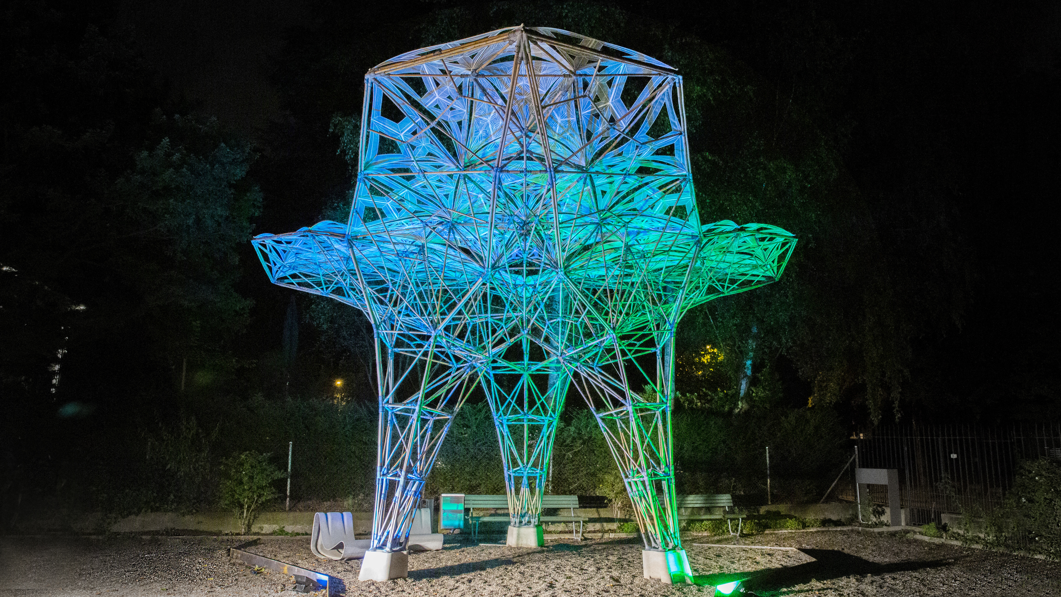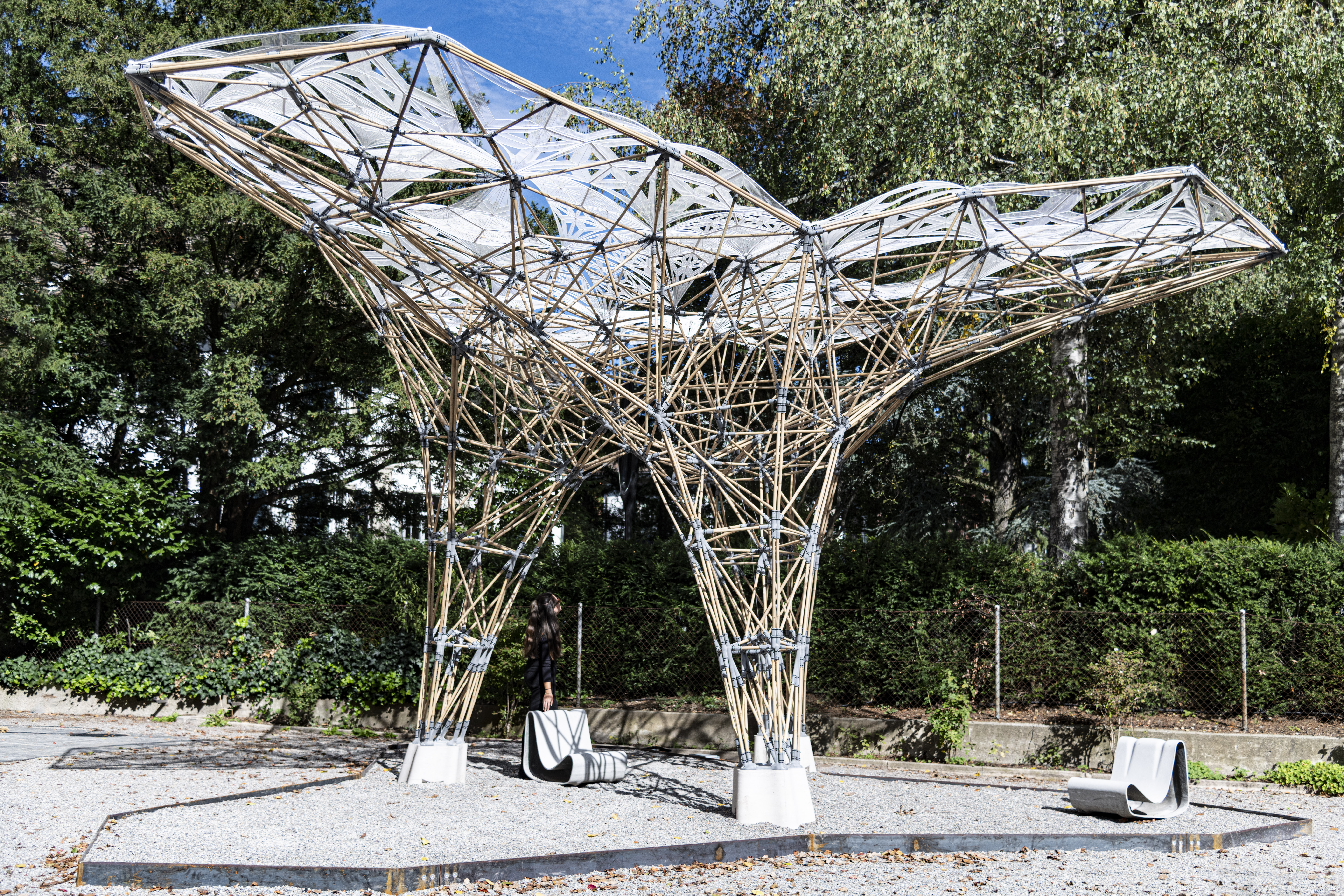 이 프로젝트는 지속가능한 건축자재인 대나무와, 복합적인 3D 프린팅 기술, 고도의 건설 엔지니어링 기술을 융합하여 40㎡를 드리우는 200kg의 파빌리온을 탄생시켰습니다.